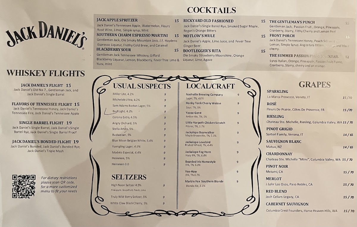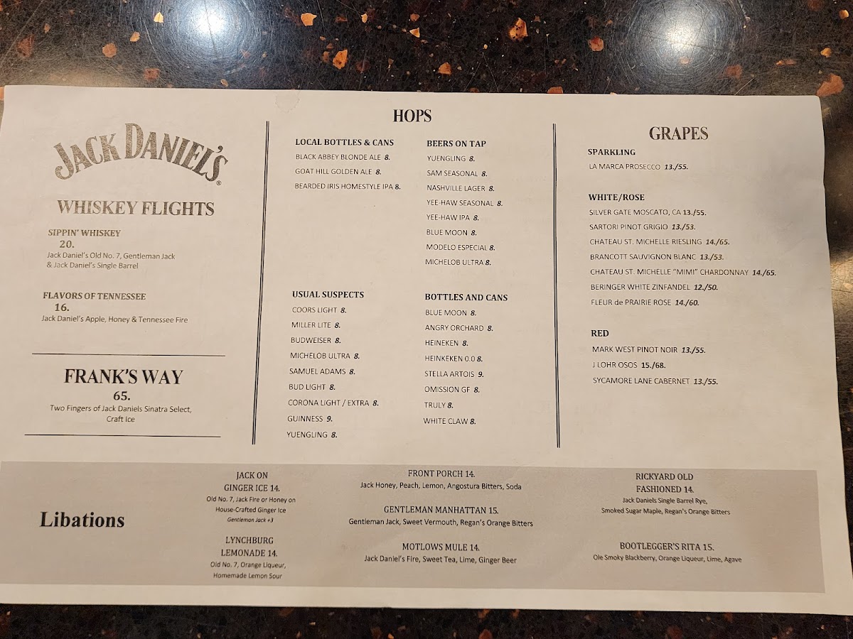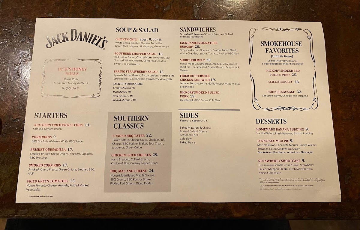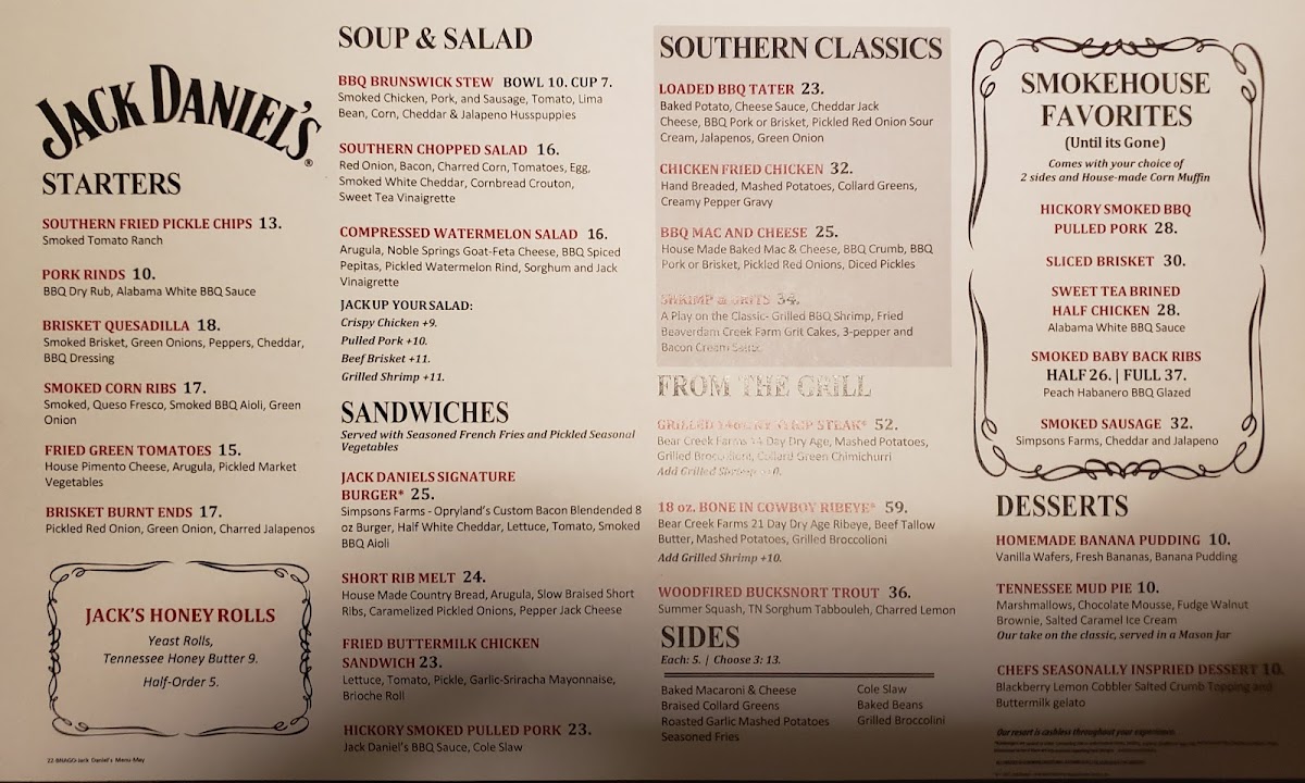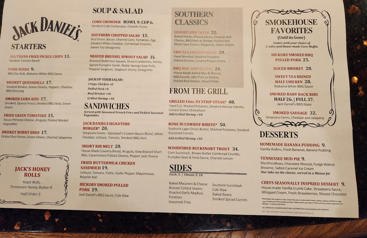 While some have noted that portion sizes can be generous, the combination of pulled pork, savory mac-n-cheese, and delightful honey rolls create a symphony of tastes that resonate with traditional Southern fare. Guests often commend the welcoming atmosphere and exceptional service, particularly highlighting attentive staff like Tyler. Although prices may skew higher, the overall experience is deemed worthwhile. For an unforgettable meal that captures the heart of Tennessee, Jack Daniel's is a destination not to be missed.